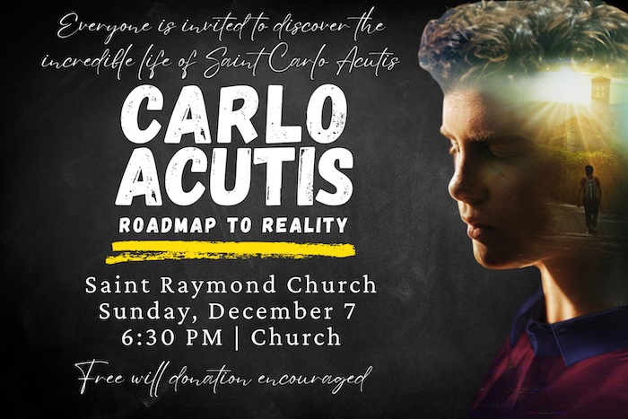 Everyone is invited! Watch the movie with us, “Carlo Acutis, Roadmap to Reality”, and learn about one of our newest saints. Free will donation is encouraged.