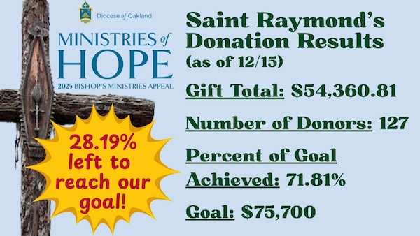 This year, our parish goal is set at $75,700, contributing towards the $3M goal for our diocesan ministries like priests retirement, seminary formation, and programs for the poor and vulnerable.
