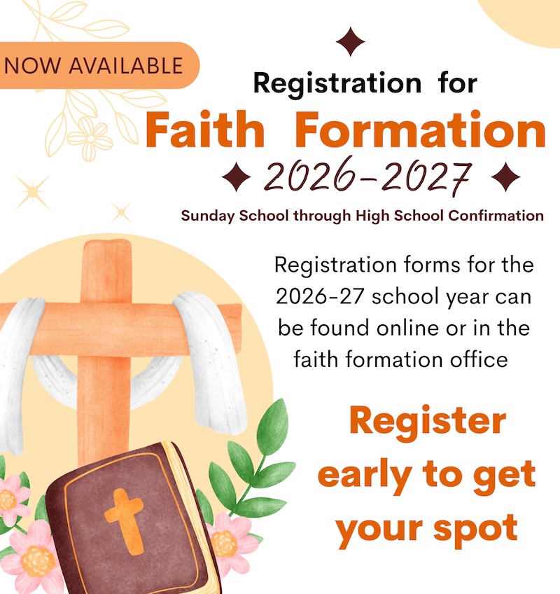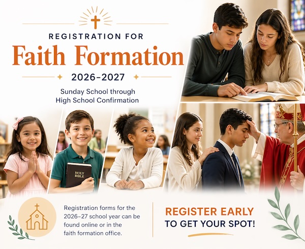 REGISTER EARLY! Faith Formation for 2026-2027
